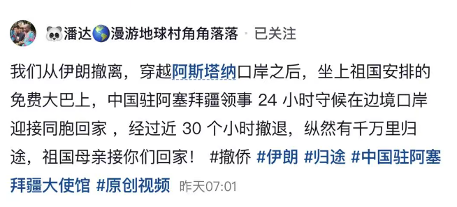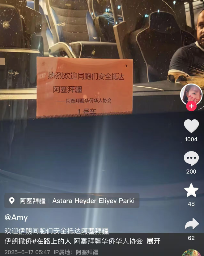 中国驻阿塞拜疆使馆消息,截至当地时间20日12时,已有逾740名中国公民从伊朗经阿斯塔拉口岸撤至阿塞拜疆境内。