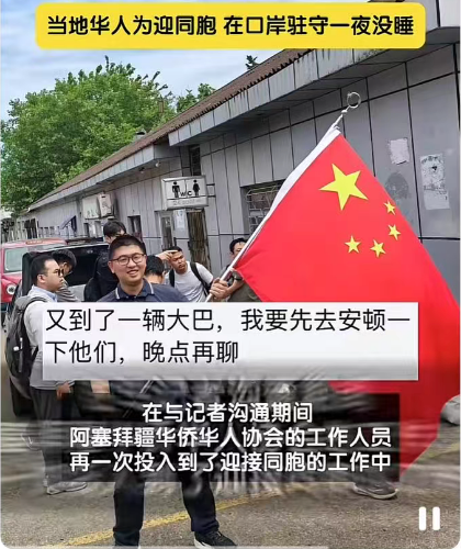 在阿塞拜疆华侨华人协会协助下,入境阿塞拜疆的中国公民统一乘坐大巴到巴库入住酒店,或当即购买机票回国。
